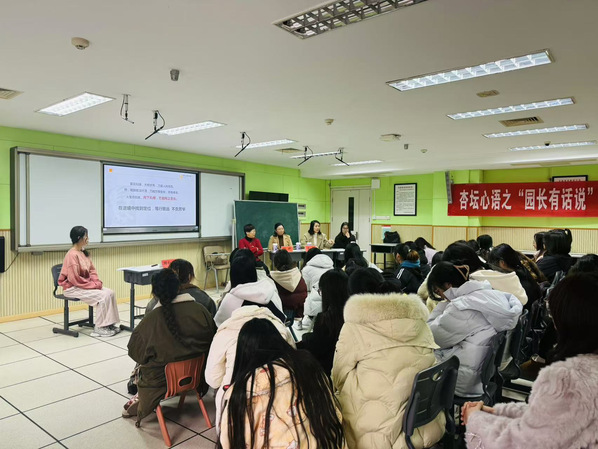 活动伊始,邱园长聚焦“学前专业成长与就业规划”主题,深入浅出地分析了当前学前教育的就业整体形势,并引导员工从了解行情、多元发展、合理规划三个方面应对当前就业困境,树立正确就业观念。此外,在交流过程中邱园长特定强调,优秀的教师团队是幼儿园发展的核心竞争力,通过营造良好的园所文化、提供多元化的专业发展机会等方式,能够有效促进教师的自我成长与团队协作,为幼儿提供更高质量的教育服务。