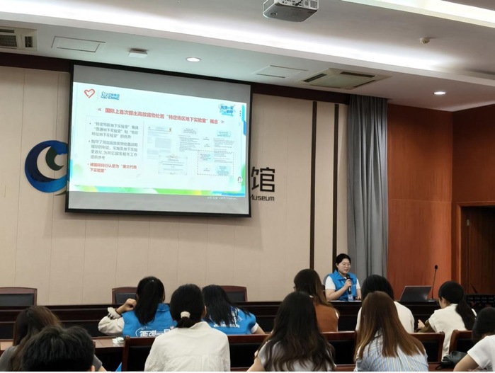 活动中,宣讲团成员以甘肃北山这片“神秘而坚韧的土地”为起点,生动还原了三代科研人扎根戈壁三十载的奋斗历程:从住帐篷到建宿舍楼,从面对荒漠困境到攻克高放废物处置这一全球性难题,再到北山地下实验室开工建设的历史性突破,每一个细节都让现场观众感受到中国科研工作者的坚守与担当。
