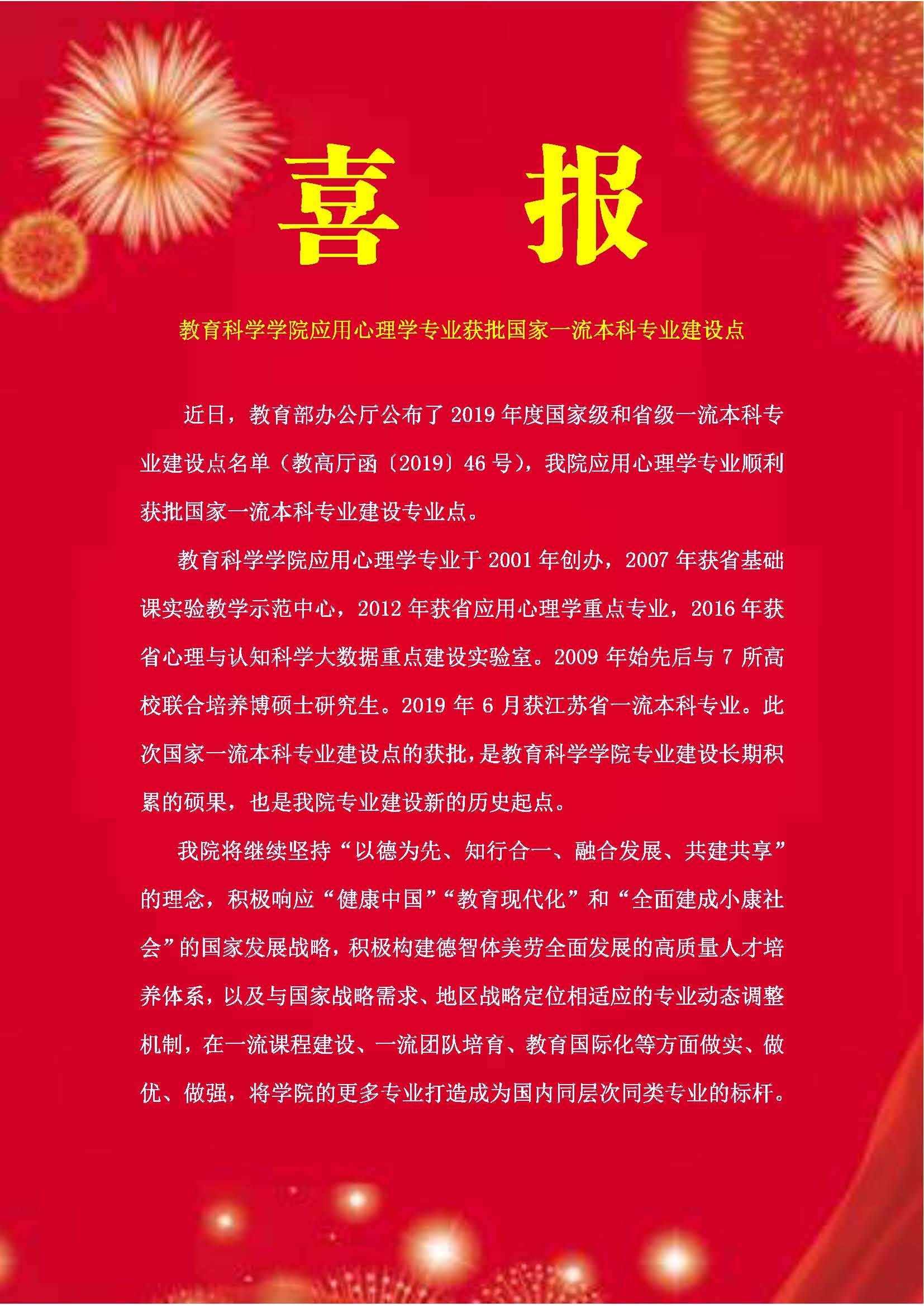 喜报--EMC易倍应用心理学专业获批国家一流本科专业建设点