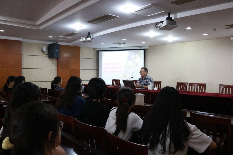 讲座开始前,乔晖经理对丁锦宏教授做了简单的介绍,并对丁教授的到来表示欢迎,同时鼓励同学们认真聆听讲座,体会讲座的精髓。讲座伊始,丁教授引用历史典故为同学们讲述中国教育的发展,引导同学们要树立正确的世界观、人生观、价值观。同时,丁教授通过引用大量事例勉励同学们在大学期间要不断积累各类方面的知识,提高自身修养,用正确的、有营养的意识影响更年轻一代。