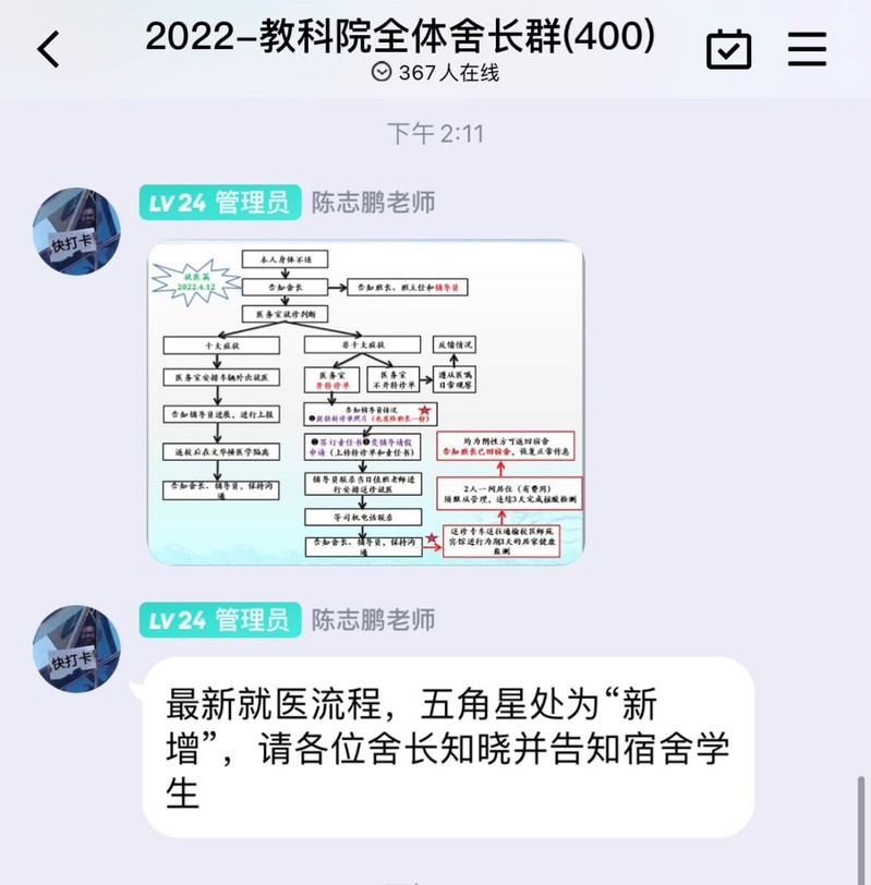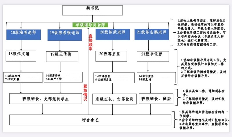 EMC易倍把防控网络布置到每一幢楼宇,把关心关爱汇聚到每一间寝室,细化防控范围,实现精确防疫。网格化管理分层次实行舍长落实机制和监督保障机制。年级总负责人、班级负责人、分管宿舍负责人实施督促保障机制,开展各项疫情防控工作,传达疫情防控信息,监督常态化核酸检测工作,督促和完成年级的相关数据统计工作,关注员工心理状态,了解员工最新需求,保证员工正常生活。舍长实施落实机制,督促全体寝室成员认真、及时完成各项疫情信息登记、核酸检测、健康打卡、检测截图收取等疫情防控工作,每日对宿舍成员进行体温测量,督促宿舍成员出宿舍戴好口罩,不信谣、不传谣、不私自举办或参加聚集类活动,积极配合楼层长日常晚归检查工作。宿舍网格化管理的两大机制切实做好了管控到点、服务到人的工作,保证疫情防控顺利进行,使宿舍疫情防控网精准覆盖到每一个在校员工。