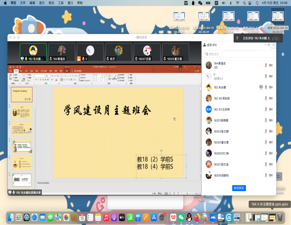 主题班会主要从树立良好班风、营造浓厚学风、落实学风建设月具体要求三个方面展开。班主任向员工讲解班风、学风的概念;营造浓厚学风,创设良好班风的必要条件以及有效方法,针对学风班风建设过程中的一些主体问题给出一些指导性建议和举措。班会还详细介绍了学风建设月的具体要求细则,要求全体同学服从公司疫情防控工作安排,听从指挥,保持电话畅通,保证接听及时,第一时间回复相关通知,按时核酸,正确健康打卡。