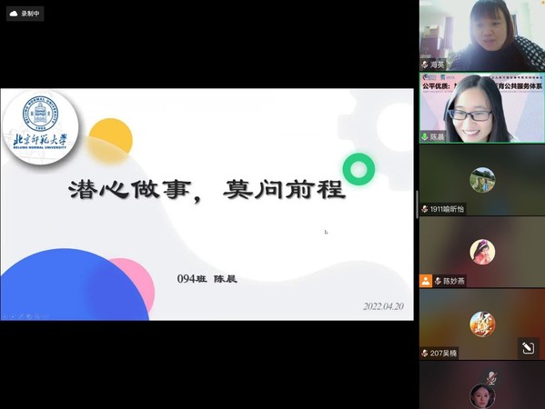陈晨讲述的前四个字重点围绕所作所为,而后四个字重点围绕所思所想。五、“莫”即不要,通过强化与自我的比较,弱化与他人的比较,摆脱攀比的心态,通过放弃高高在上的,选择适合自己的,摆脱贪婪的欲望。六、“问”即思考,陈晨建议同学们在完成一项任务后要开展四个问题的反思,即“认真对待了吗”“我到底学到了什么”“有没有改进的地方”“自己有什么缺点”。七、“前”即未来,“未来不可知,不如活在当下”,珍惜现实,把握当下。八、“程”即成就,陈晨向同学们抛出“成功和光环真的那么重要吗”这个问题,并讲述了关于这个问题自己思想的转变,旨在告诉同学们随遇而安才是人生的主旋律。
