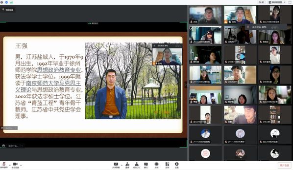 首先介绍了王强教授的个人生平,王强同志英年早逝,在生命的最后4年里,王强忍着病痛,先后阅读了200多部党史和政治理论书籍,在《中共党史研究》等国内权威理论刊物上发表论文17篇,出版专著《中国共产党“劳资两利”政策研究》。年仅42岁,王强教授从未因自己的身体原因耽误员工毕业论文的答辩。当得知员工考研遇到困难时,还积极利用自己的社会关系帮助他们通过调剂顺利获得深造的机会,并一直与他们保持密切联系,在学业上悉心指导,在生活上关心帮助,为他们的成长指引方向。