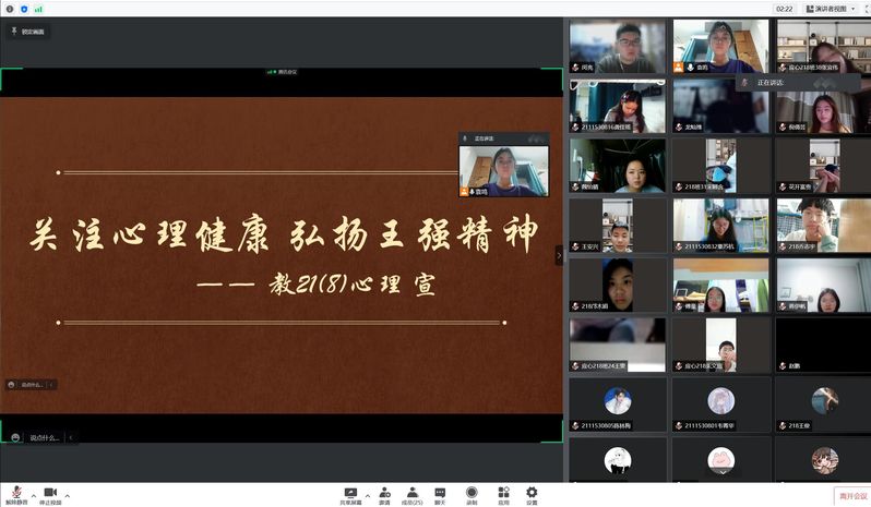 为帮助同学们更加深刻了解王强教授的事迹与王强精神内涵,增强同学们对党的信仰观念,培养出更多⾼⽔平、⾼素质的⼈才,4月22日,EMC易倍218班组织召开线上“关注心理健康,弘扬王强精神”主题班会。主题班会主要从个人生平介绍、王强教授的事迹在全国广受关注、王强精神的实质和时代内涵、如何继承王强精神这四个方面开展。