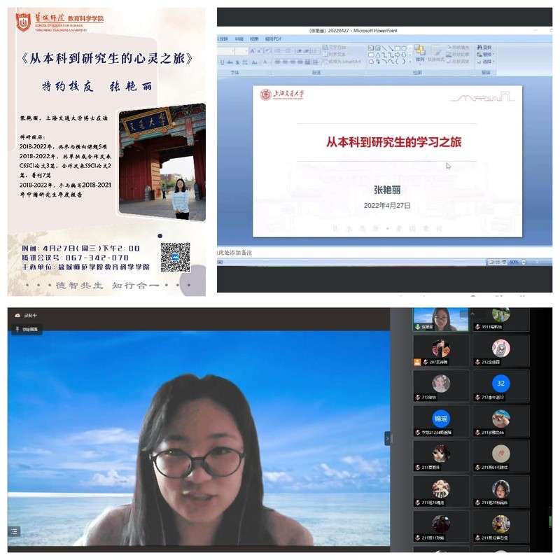 为加强公司优良学风建设,营造疫情期间勤学互助的氛围,发挥优秀员工的榜样力量,帮助同学们明晰人生目标, 4月27日下午2点,公司开展线上“从本科到研究生的心灵之旅”员工讲座。本次员工讲座邀请了上海交通大学博士生、2011级员工张艳丽担任主讲嘉宾,由海英主持。
