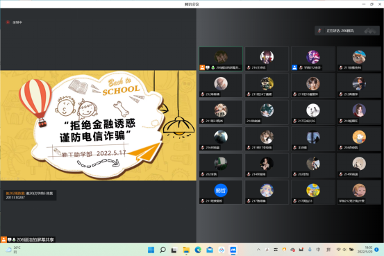 接着,主持人从常见的诈骗手段、受骗人的心理以及如何预防诈骗方面给同学们讲解了有关反诈的知识细致入微的分析了受害人受骗的全过程,有利于同学们充分认识新型骗犯罪各种形式,提高了同学们的防范意识,保障了同学们自身生命财产安全。反诈知识的讲解给广大同学们敲响了警钟,在校园营造了良好的防诈骗氛围。