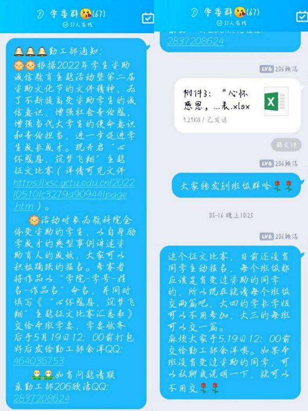 首先在学委群中发布相关活动通知及汇总表,请学委转发至各班班级群,呼吁同学们积极报名。随后于5月16日再次通知,提醒同学们报名截止时间。最终有近四十名同学参与活动并提交文章,随后建立评委群,评选出了十位优秀的同学,将所有员工文章和优秀作品打包发给老师看了之后,交至公司进行最终评比。