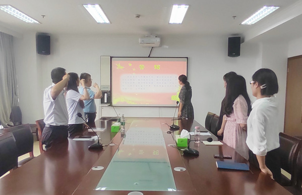 活动中,首先总结上半年党建活动以及党建服务团队建设、教学、人才培养等方面取得的系列成绩,尤其全体党员在疫情防控期间为社会各领域开展的志愿服务活动。之后全体党员重温入党誓词,铿锵有力的誓词,强烈震撼着每一位党员的心,坚定了自己不忘教育初心,坚持立德树人,担当使命的决心,加强学习,提高自己的政治水平和专业能力,更好的服务员工,服务社会,在自己的工作岗位上做一颗永不生锈的螺丝钉,起到模范带头作用,勇当排头兵。