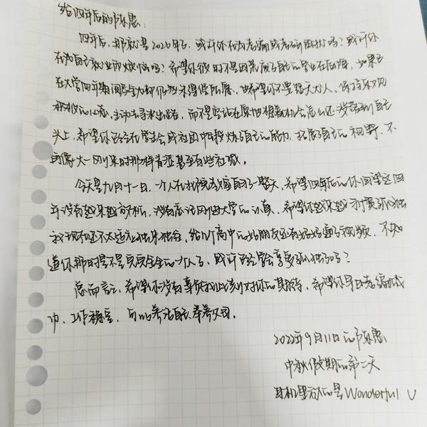梦很长,路很远,但成长却很近。纸上可能有大家不舍得遗忘的小秘密,也可能承载着大家对大学四年生活的规划和目标。希望新同学们在四年后再次看到自己所写的信件时,都能褪去青涩与不安,实现自己的梦想,创造出更多的可能,都能成为信纸上所写的人!