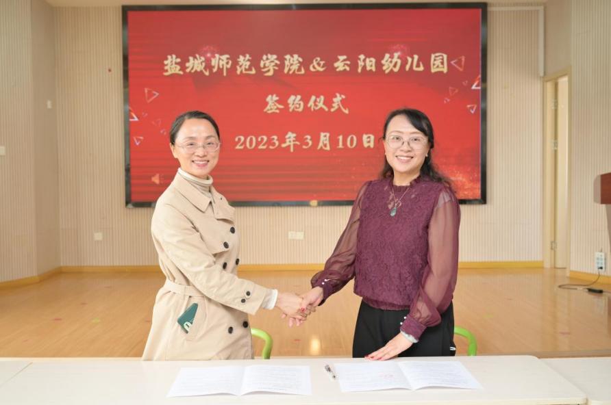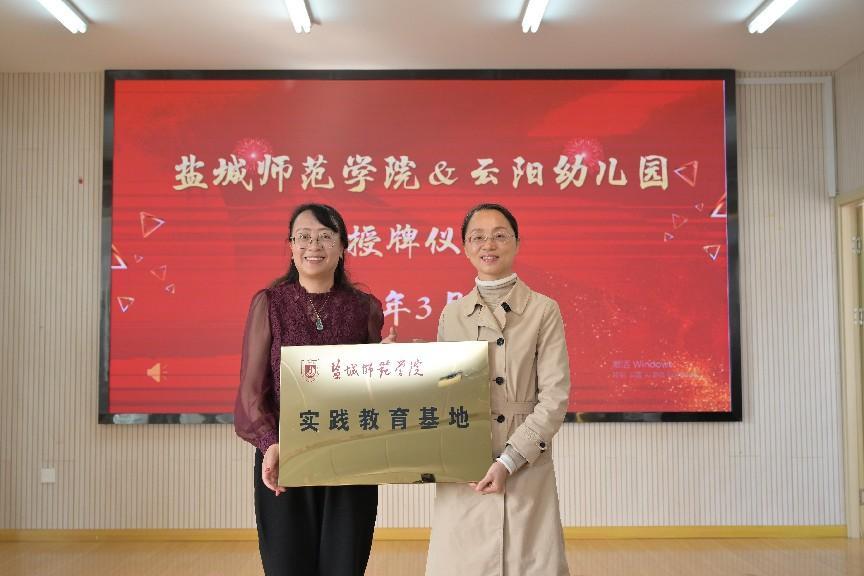 2023年3月10日上午九点,EMC易倍与江苏省丹阳市云阳幼儿园举行了实践教育基地签约、挂牌仪式,EMC易倍学前教育专业负责人刘强教授、云阳幼儿园张秋兰园长、步宛翀副园长及EMC易倍部分教师出席了本次活动。