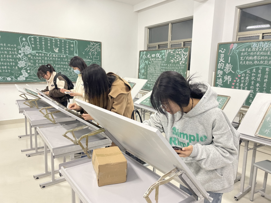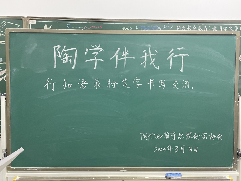 陶行知是中国近代教育史上伟大的人民教育家,他毕生致力于教育事业,是为人师的榜样。为了帮助同学们走进陶行知,学习其教育思想、教学理念,陶行知教育思想研究协会于3月31日在实训楼举办了“陶学伴我行”行知语录粉笔字书写交流活动。