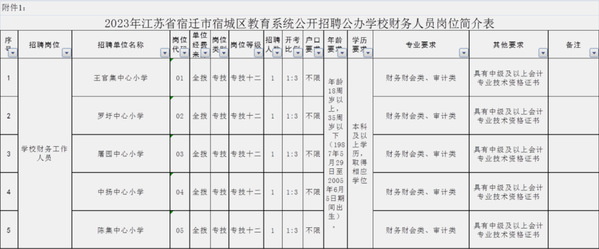 附件1:2023年江苏省宿迁市宿城区教育系统公开招聘公办公司财务人员岗位简介表
