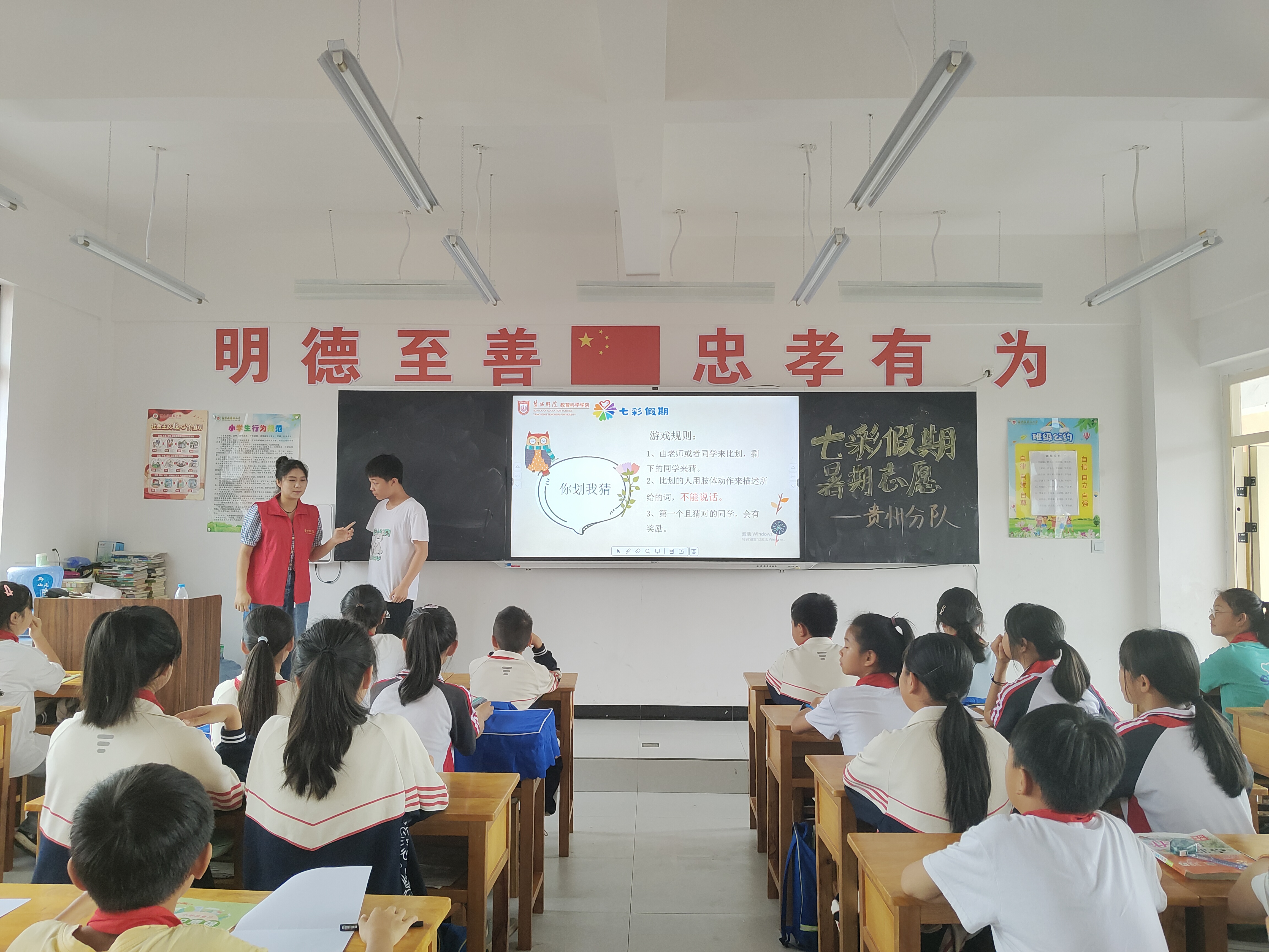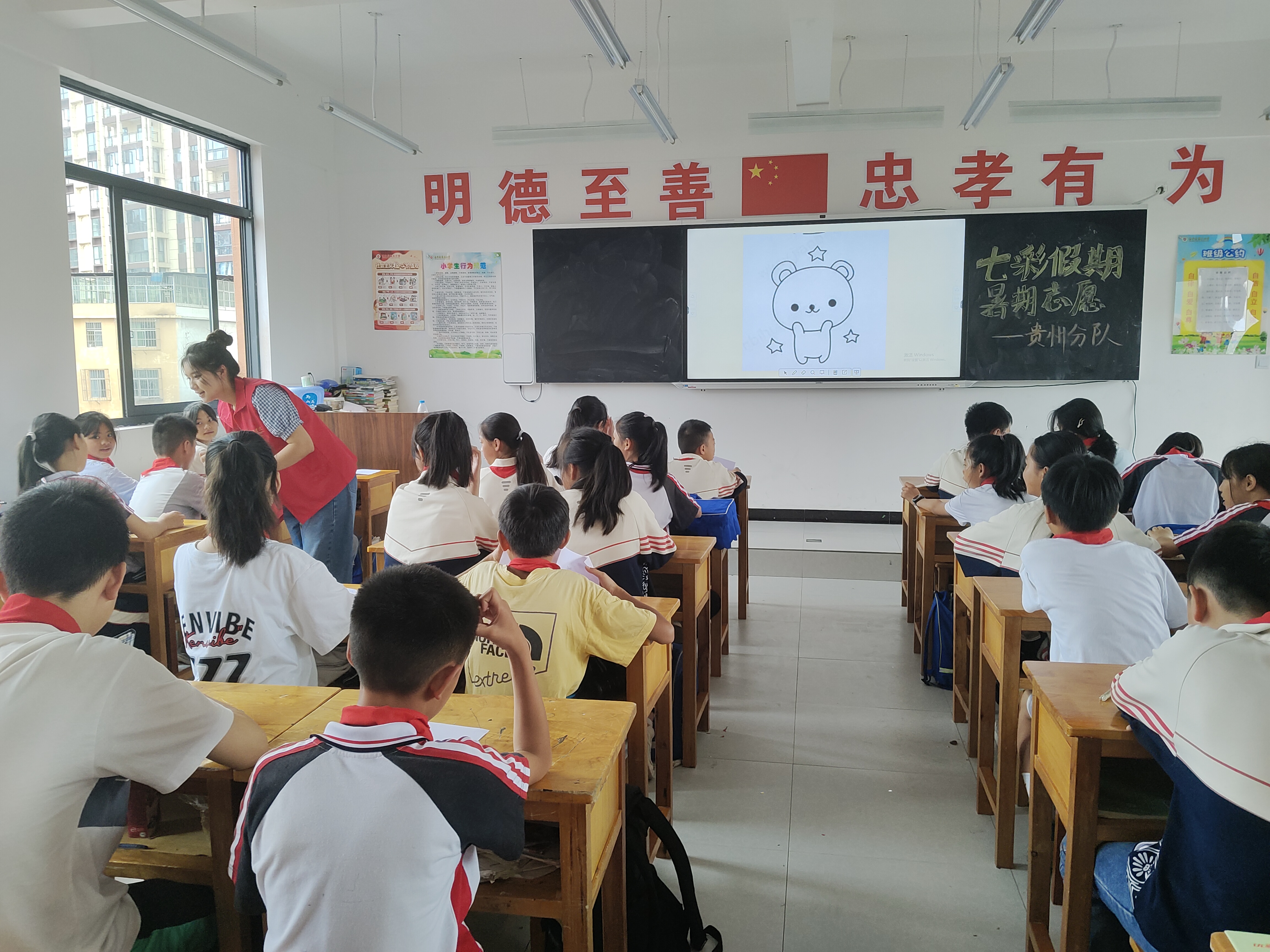 “今天首次授课非常成功,在这个假期能够陪伴自己家乡的留守儿童,用在校所学知识反馈家乡对我来说是一件非常有意义的事。”来自支教团队组长吴海霞由衷的说道。来自布依族的吴治豪小朋友激动地说:“我好喜欢今天的“兔兔老师”,今年暑假我能和哥哥姐姐们一起玩耍,从他们的口中我了解我所没有见过的新事物,真的好开心啊!”