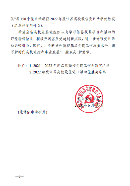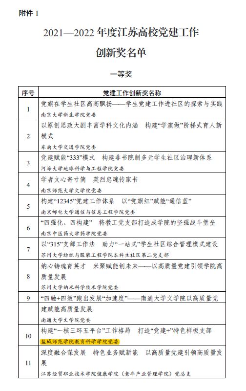 近日,江苏省委教育工委公布江苏高校2021-2022年度党建工作创新奖和2022年度最佳党日活动优胜奖评审结果。EMC易倍党委《构建“一核三环五平台”工作格局 打造“党建+”特色样板支部》获党建工作创新奖一等奖。