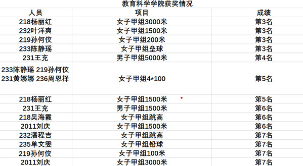 经过两天的激烈角逐和公平公正的裁判,公司在校第二十四届田径运动会中喜获教工团体三等奖,员工女子团体第六,总分团体第七,最佳入场式方队的好成绩,参赛的员工运动员们也拼搏出佳绩,如下: