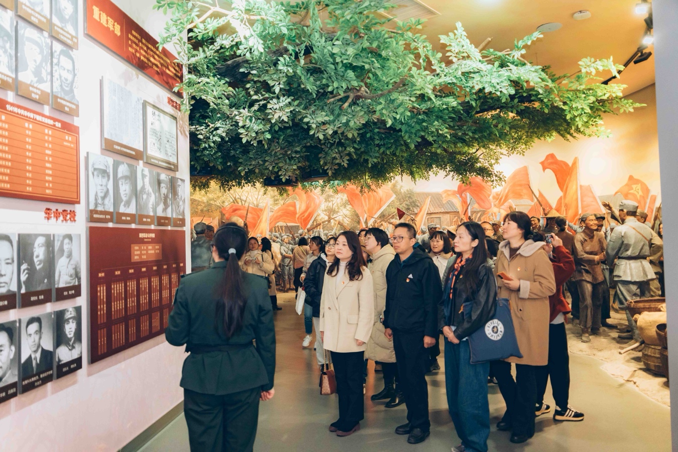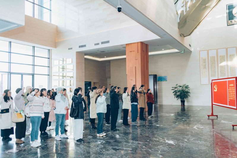 在白驹狮子口会师纪念馆,所有党员面向党旗重温入党誓词,以铿锵有力的声音许下铮铮誓言。随后,大家跟随讲解员一起参观,在红色故事中重温开辟敌后抗日新局面的激情岁月。