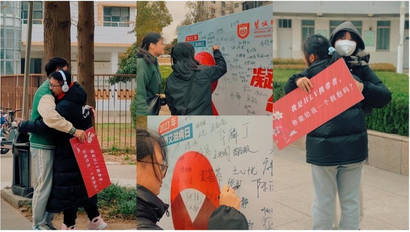 以“爱”之名拥抱青春,驱“艾”途上你我携手,公司先后开展“防艾青春young”创意作品征集、“预艾予爱,你我同在”老员工防艾知识竞赛、“激昂青春,健康同行”同伴教育主持人培训等活动,同学们踊跃报名、积极参与,为防艾工作赋能。此外,在公司团委于11月29日开展的“共抗艾滋,与爱同行”健步走活动中,公司在校生参与度近60%,同学们在健步走中践行着健康、文明的生活方式,在拥抱中传达对艾滋病患者的关心关爱,给他们一个拥抱,让世界多一份温暖,在展牌上签满的名字中展现共抗艾滋的决心。