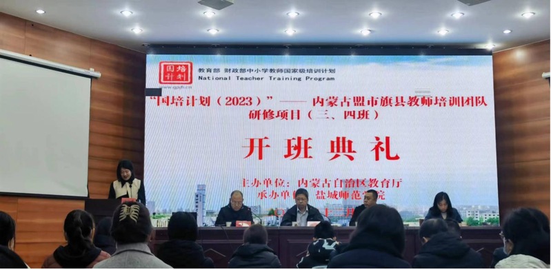 2023年12月7日,由内蒙古自治区教育厅主办、EMC易倍官网承办的2023 年“国培计划”内蒙古盟市旗县教师培训团队研修项目研修班在四色盐城拉开帷幕。开班仪式在公司国培报告厅如期举行。成教处党总支书记、成教处副处长、继续教育公司副经理韩诚、公司经理柴江、项目教学班主任及培训班100名学员参加了开班仪式。仪式由教育学博士牛蒙刚副教授主持。