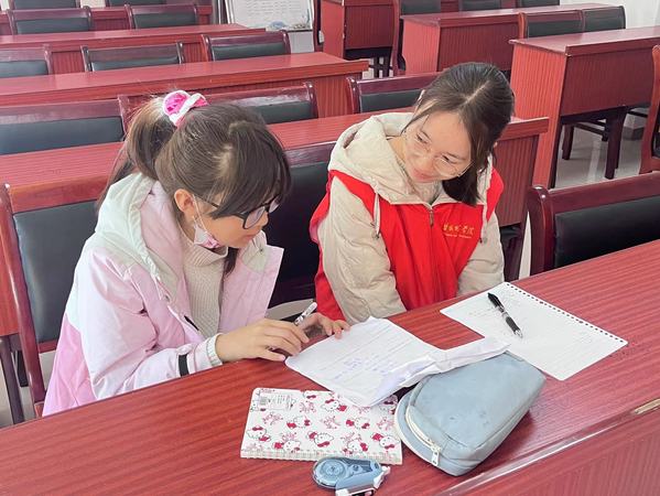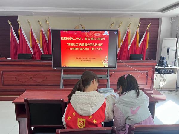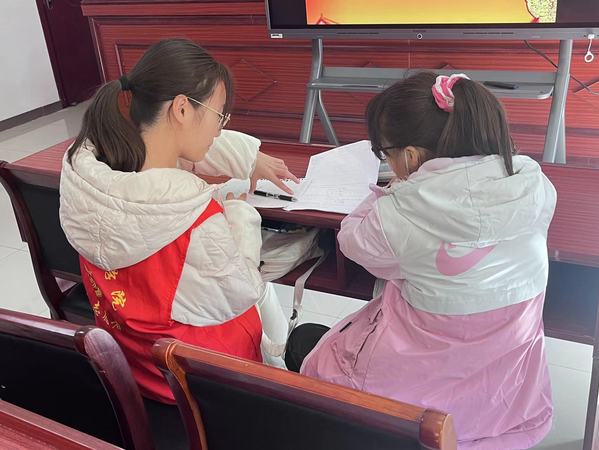 在社区会议室内,辅导经验丰富的团员志愿者们通过制定学习计划、引导启发的方式,有规划地辅导孩子们完成作业,指导孩子们及时处理知识薄弱点、勤加练习、运用正确的学习方法提高学习效率。并向孩子们分享自己的学习思路与学习技巧,鼓励他们勇于动脑,善于思考。