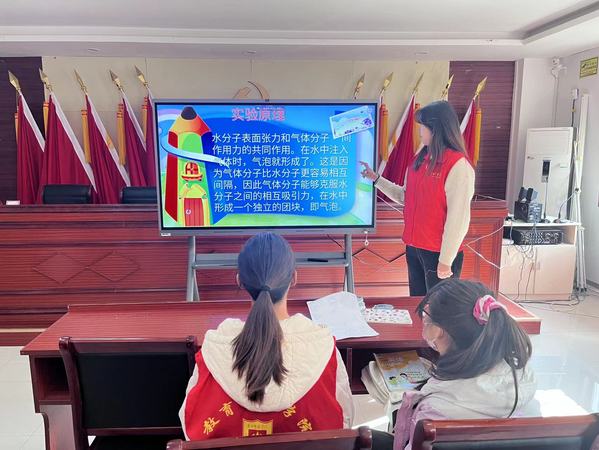 课程辅导结束后,志愿者们带领小朋友进行科学小实验“水中吹泡泡”,不仅可以让小朋友感受科学实验带来的快乐,促进手眼协调的训练,还可以还可以通过严谨的实验过程培养孩子们踏实务实的学习态度。