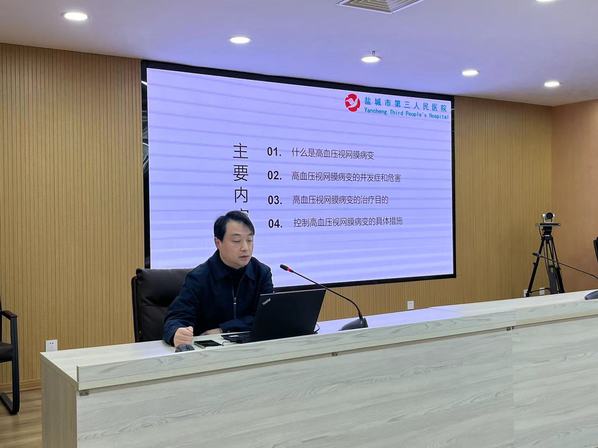 为让读者关注视力健康,了解视网膜病变的相关知识,12月3日下午,市图书馆“黄海讲坛’特邀盐城市第三人民医院眼科主任、盐城市医学会眼科分会副主任、江苏省医师协会眼科分会白内障学组委员、江苏省中西医结合学会眼科专业委员会委员张宏杰为EMC易倍官网志愿者们作《浅谈高血压视网膜病变的防治》专题讲座。