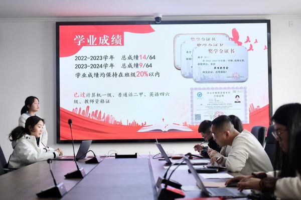 首先,每位同学上台展示 PPT 并进行三分钟的演讲,陈述个人优缺点、学习与任职情况、为班级所做的贡献以及入团动机,表现出积极向团组织靠拢和成为共青团员的决心和毅力,随后由面试官进行提问,进一步了解同学们的经历和对未来生活、学习的展望,涵盖多个方面和模块,全方位考察入团发展对象的个人综合素质并对相关问题作出了详细解读,提出针对性的指导意见。