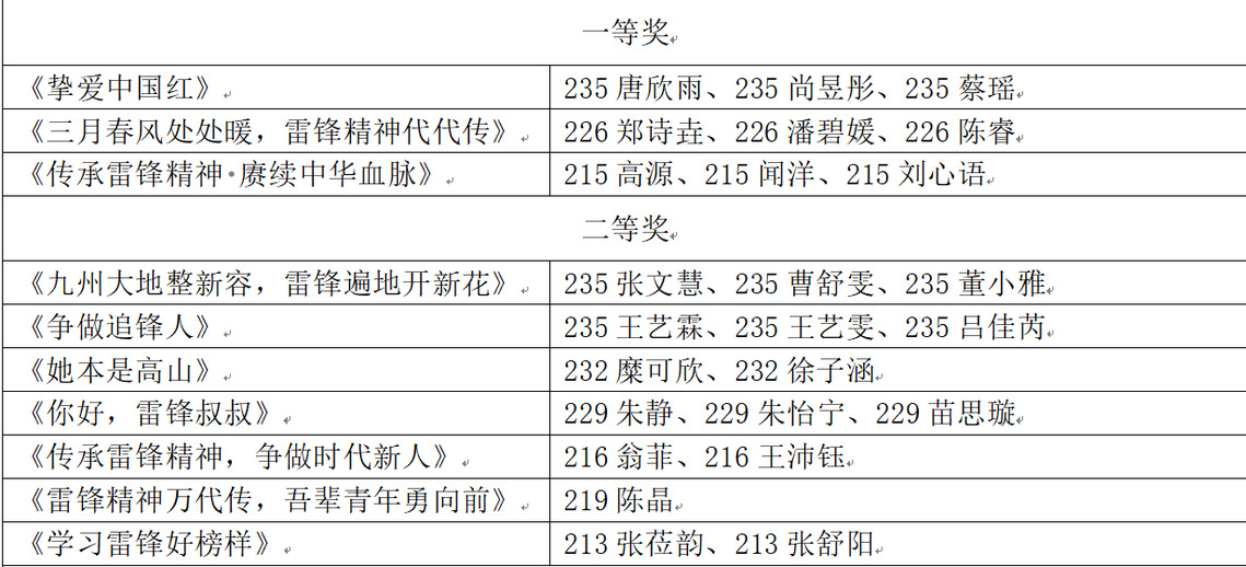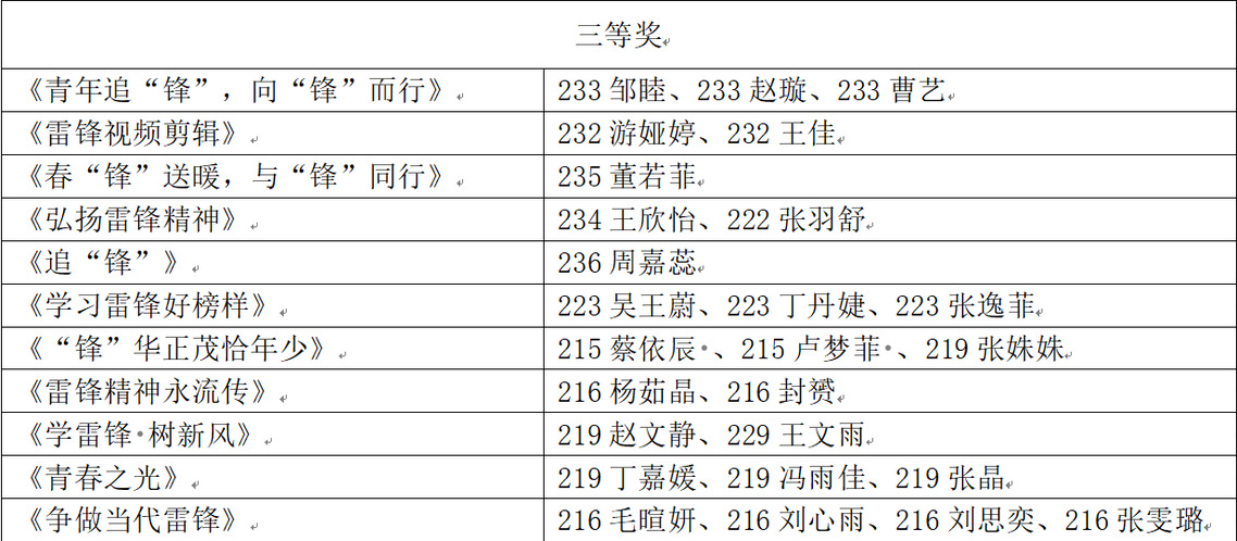 以下为学雷锋视频剪辑大赛获奖者名单: