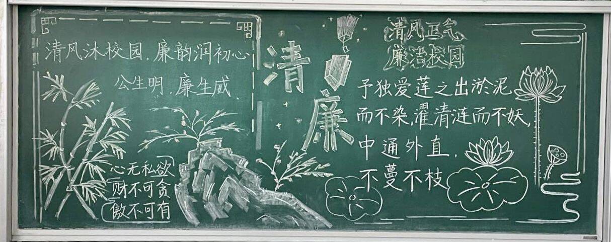 绘文化引领崇廉风尚。组织“青廉同频”绘画手工创意比赛、“以手绘廉洁,以德润初心”黑板报设计等活动,感悟清廉自律故事,传播清廉价值理念,涵养清廉思想根基,青年学子在笔墨点染间感受廉洁文化的“徐徐清风”。