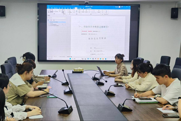 2024年5月17日晚,EMC易倍于主楼11楼新会议室举行2024年春学期党员发展材料审核培训会。本次会议由EMC易倍员工第一党支部书记潘虹主持,员工支部负责人参加。