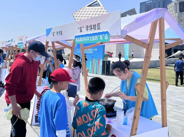 本次活动形式多种多样且具有盐城当地特色,由“奇妙的盐晶——盐雕制作”、“海盐里的科学——盐的‘皂’话”和“盐与生活——海盐热敷包体验”等18个有趣的项目组成。在活动开始前,志愿者们认真学习了相关特色活动制作流程和原理,以确保能给游客提供最好的服务。活动开始后,游客陆续进入市集,争相体验相关项目,感受“海盐”的魅力。同时,我们的志愿者也表现出了充分的耐心和十足的热情,手把手教游客制作盐雕、盐皂等相关文创产品,惊喜设计的项目寓教于乐,让游客们玩中学,学中玩,有效提升游客们的参与感,让公众在探索游玩中陶冶情操,感知在时间积淀中海盐文化的魅力,对盐城当地的特色文化有了系统性的认识,增强了民族自豪感,坚定了文化自信。