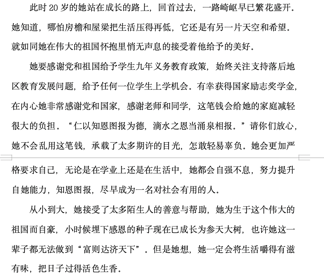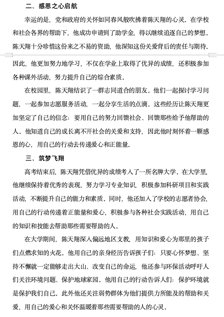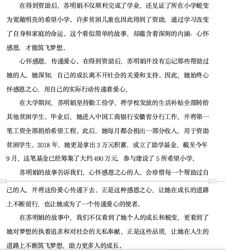 本次征文活动得到了员工的积极响应,收到征文投稿若干篇。参赛作品紧扣“诚信感恩,励志成才”主题要求,稿件内容健康、积极向上,思想文化内涵丰富,价值取向正确鲜明。投稿员工以独特的一人或者一事,真实描绘了在国家资助下员工励志成才而后回报社会的真实故事,传递了自立自强的奋斗精神,同时分别讲述了国家、公司资助给予学习和生活上的帮助。员工纷纷表示一定要勤奋学习,回报社会,其感激之情溢于言表,令人动容。