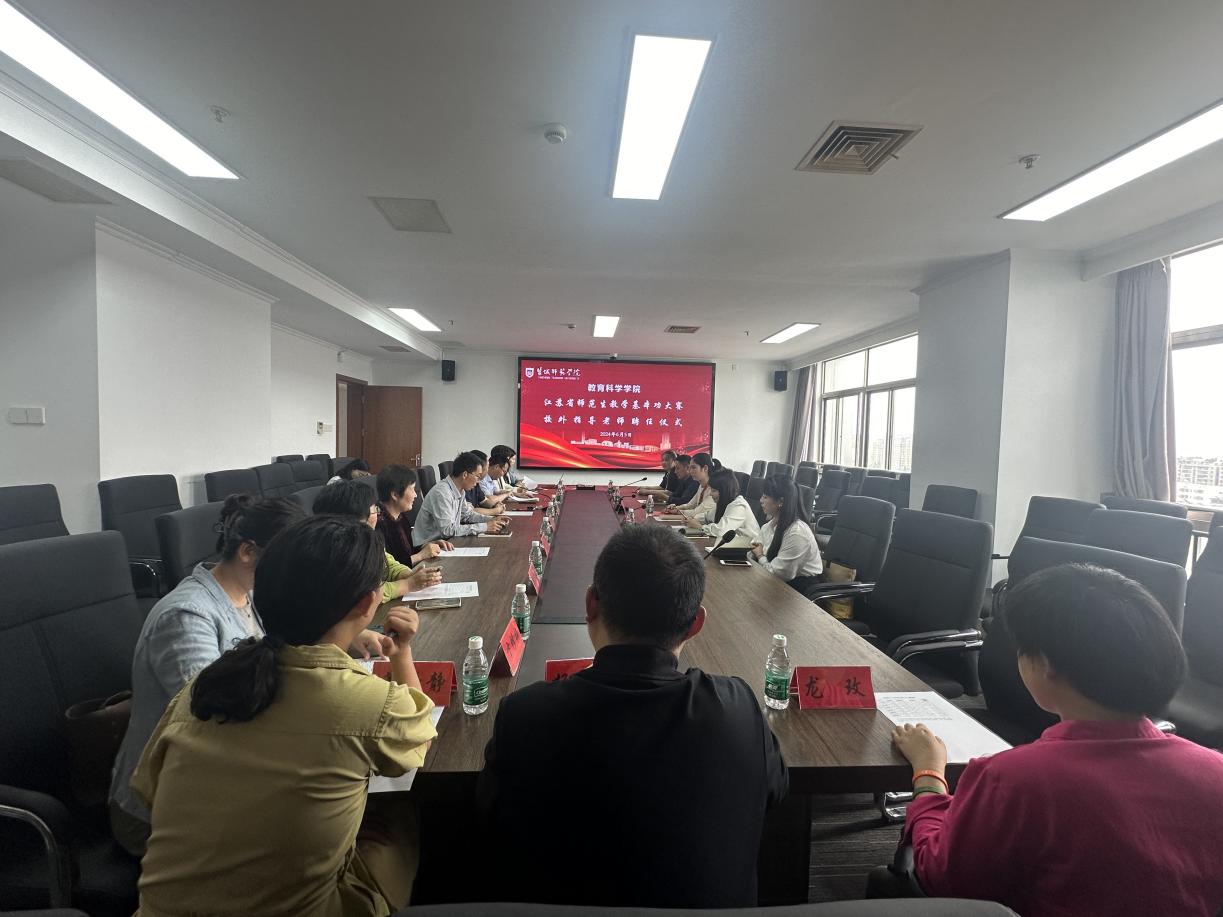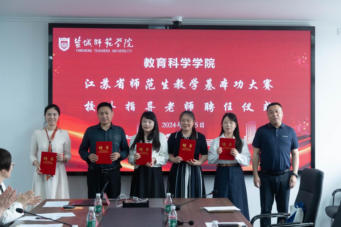 6月5日下午,EMC易倍在公司会议室举办江苏省师范生教学基本功大赛校外指导老师聘任仪式。经理柴江,副经理郭雷振,小学教育系主任张权力、副主任朱洪翠,院内指导老师,教研办全体工作人员,院外指导老师参加仪式。仪式由郭雷振主持。