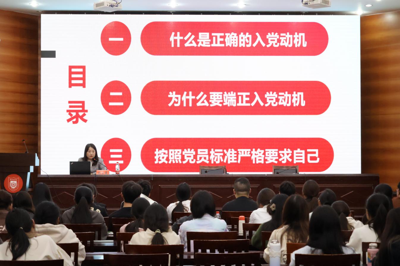 开班仪式后,杨日晨以“端正入党动机 以实际行动争取早日加入党组织”为主题为全体积极分子上了第一堂专题党课。围绕“什么是正确的入党动机”、“为什么要端正入党动机”、“按照党员标准严格要求自己”三个维度,杨日晨详细阐述了一名合格共产党员应具备的条件和要求。她指出,全体学员应以此次培训为契机,进一步学习了解党的基本知识,坚定理想信念,端正入党动机,找准努力方向,以实际行动争取早日在思想上、组织上入党。