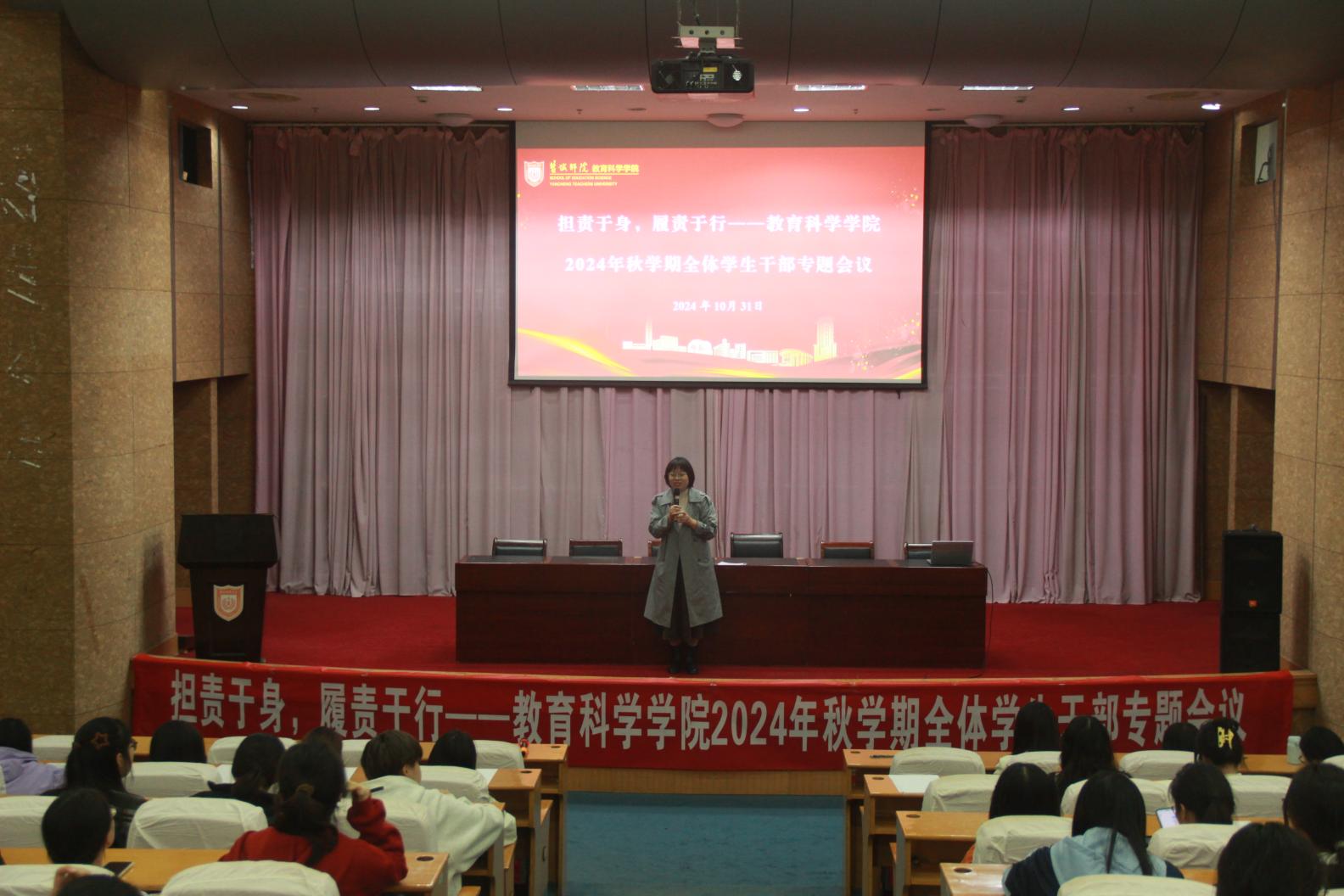为深入学习贯彻落实习近平总书记关于青年工作的重要思想,推动“一站式”员工社区建设,进一步增强员工干部队伍的凝聚力和向心力,提高员工干部的工作能力和服务水平,10月31日晚,EMC易倍在通榆校区国际会议中心召开2024年秋学期全体员工干部专题会议员工干部大会。公司党委副书记海英、全体专职辅导员及公司团委、员工会、自律会全体员工干部共两百余人参加会议。会议由学工办副主任陈志鹏主持。