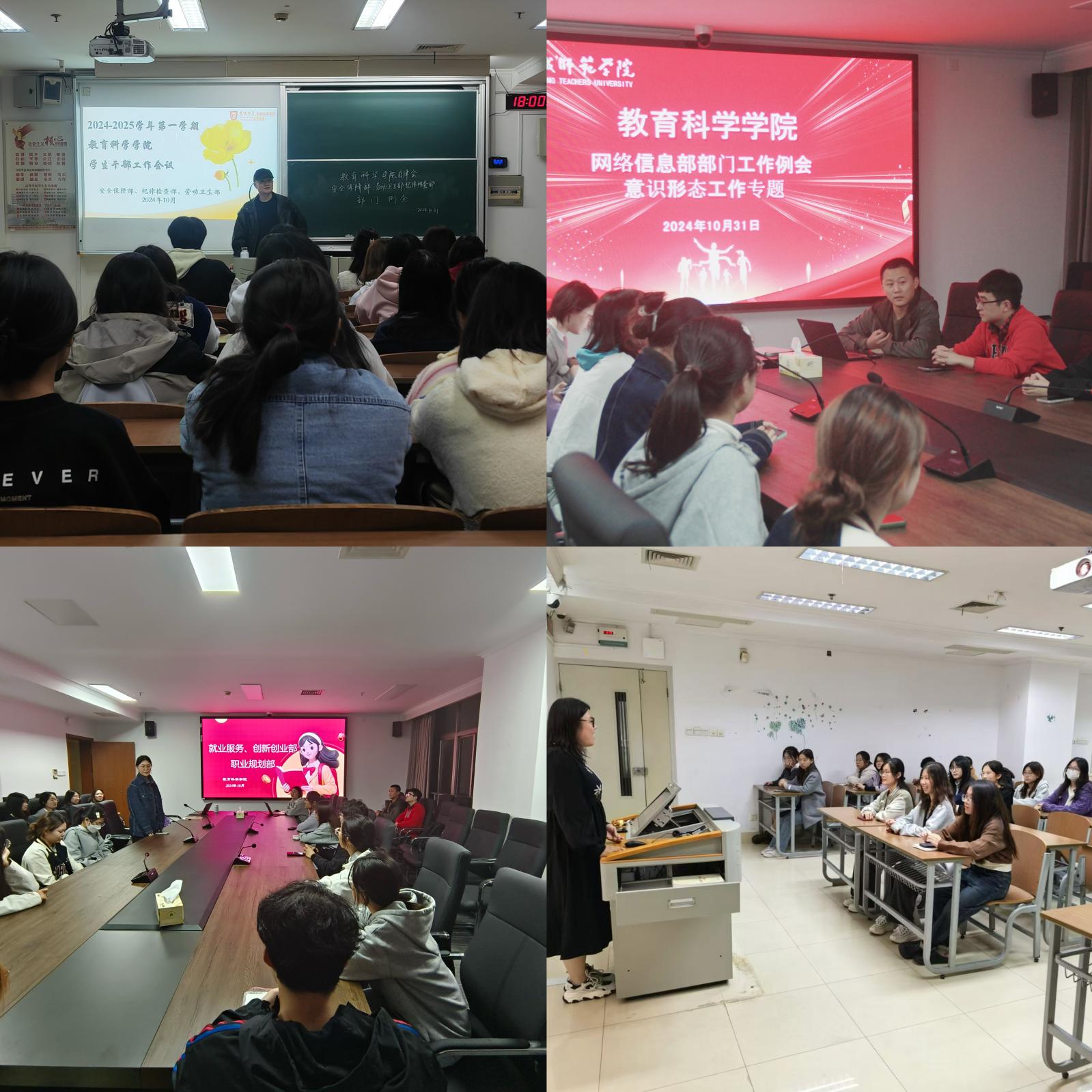 最后,公司辅导员老师分部门开展工作例会,对员工安全稳定、日常管理、学风建设、意识形态、评奖评优、专项事务等工作等进行了重点强调,并对后续公司工作进行部署安排。