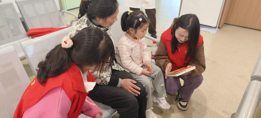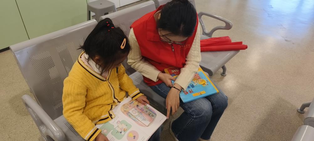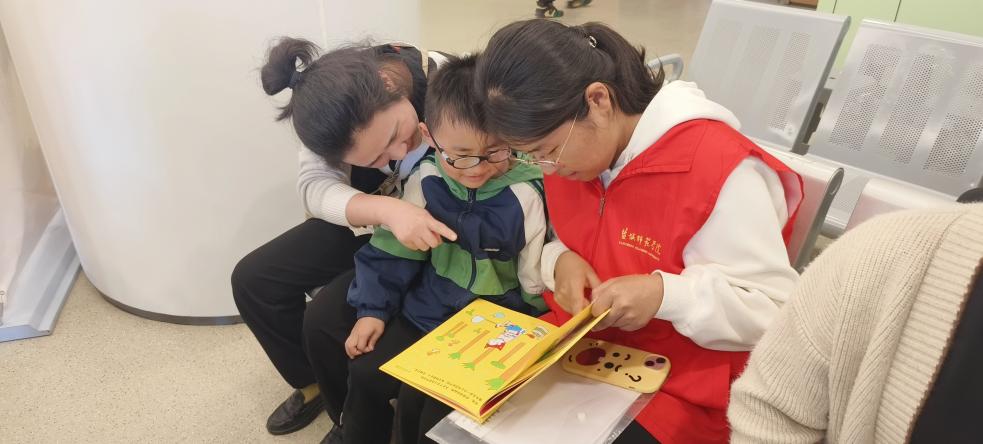活动现场,志愿者们通过陪伴阅读,耐心引导孩子们走进书本的世界。“一对一”的亲密互动阅读,有效缓解了孩子们在就医过程中产生的紧张、恐惧心理。我们“穿越次元壁”,同孩子们一起体验精彩的冒险,独特的“阅读疗法”传递了一份就医时的别样温暖。随后,志愿服务团的成员们与孩子们共同聆听“儿童抽动障碍”义诊讲座。讲座期间,孩子们聚精会神,志愿者们也与主持人进行了有效的交流和互动。在和谐的氛围中,讲座顺利进行,所有人都拓宽了视野,收获了“新鲜出炉”的就医知识。