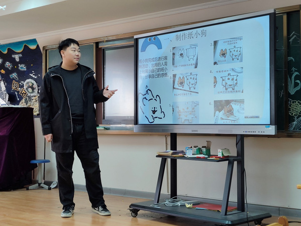 根据游戏规则,在游戏中出局的同学上台展示并介绍了自己的纸小狗,同时分享了内心感悟。有同学表示,制作纸小狗时,她仿佛忘却了一切烦恼,给自己带来了心灵上的宁静,团辅游戏让她学会了在压力之下保持冷静。