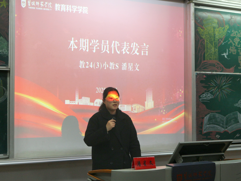 224)班魏璐颖作为员工党员代表发言。她鼓励入党积极分子要始终保持敢想敢干、敢闯敢试的精神状态和逢山开路、遇水架桥的奋斗姿态,牢记一字一句写下的申请誓言,主动扛起青年的责任担当。教243)班潘星文代表全体学员庄严承诺,未来将时刻鞭策自己学知识、长本领、修品德,在推进强国建设、民族复兴伟业中展现青春作为、彰显青春风采、贡献青春力量。