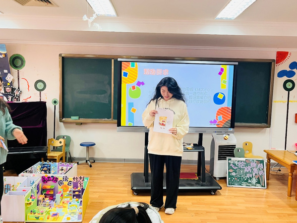 随后的“加字游戏”将现场气氛推向高潮。同学们轮流为词语添加内容,共同编织出一个个完整而有趣的故事,在欢声笑语中打破了社交壁垒。一位未能及时接龙的同学大方分享了自己的创作:“这颗五彩的心记录了多彩的情感,画上创可贴后,它多了一份自我疗愈的勇气。”在“土豆土堆腿肚子”接力环节,各组通过传递词语的方式拉近距离,默契与笑声交织,进一步消融了彼此间的陌生感。