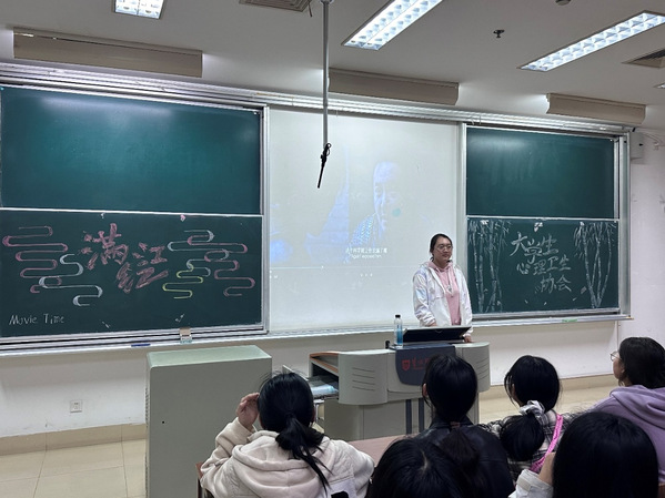 为弘扬爱国主义精神,丰富同学们的精神文化生活,2025年5月9日晚七点,EMC易倍老员工心理卫生协会联合“心语心苑”辅导员工作室在主楼B302教室精心组织了《满江红》观影活动。