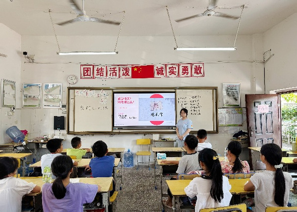 支教员工王雨桐以“桂林当地美丽风景”切入,结合抗战史实、地图标注、少年儿童传递情报小故事、动画短片等直观方式,让五年级的孩子们明白抗战并非遥远的故事,而是发生在故乡的真实历史。