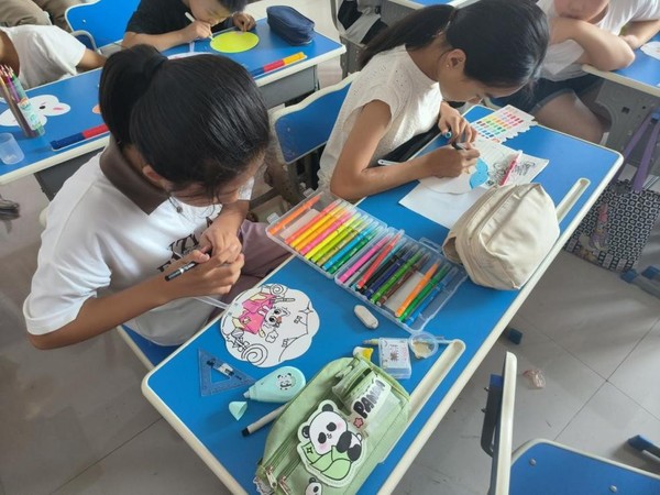 在“科学之美·画笔呈现”环节,志愿者们引导孩子们用画笔探索科学奥秘。孩子们在了解彩虹形成、花朵结构等知识后,创作出独具创意的画作——有的精细描绘花瓣构造,有的为行星添上梦幻色彩,让科学知识跃然纸上。