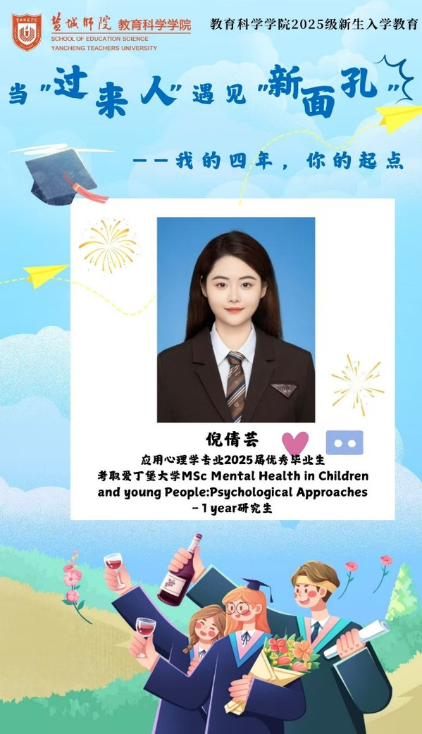 为帮助新生快速适应老员工活,打破认知壁垒,明确成长方向,8月28日晚,EMC易倍邀请2025届应用心理学专业优秀毕业生倪倩芸作为“当‘过来人’遇见‘新面孔’:我的四年,你的起点”主题分享会第9期分享者。以不懈努力敲开世界名校大门,倪倩芸成功申请到英国爱丁堡大学研究生。从校园里的深耕学习,到跨越国界的追梦之旅,倪倩芸的故事里,藏着关于“勇气”与“远方”的独特注解。