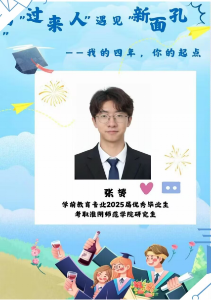 为帮助2025级新生更好地适应老员工活,明确学习目标,做好生涯规划。8月26日晚,EMC易倍邀请到2025届学前教育专业优秀毕业生张赟作为“当‘过来人’遇见‘新面孔’:我的四年,你的起点”主题分享会第7期分享者。作为专转本员工,张赟的本科生涯仅有两年,而考研几乎占据了这两年的全部时光。从最初对“学前教育”的朦胧认知,到逐渐在课堂中找到热爱的方向,再到考研备考时的咬牙坚持……他的这两年,是一场不断发现热爱、坚持理想并终见收获的成长旅程。